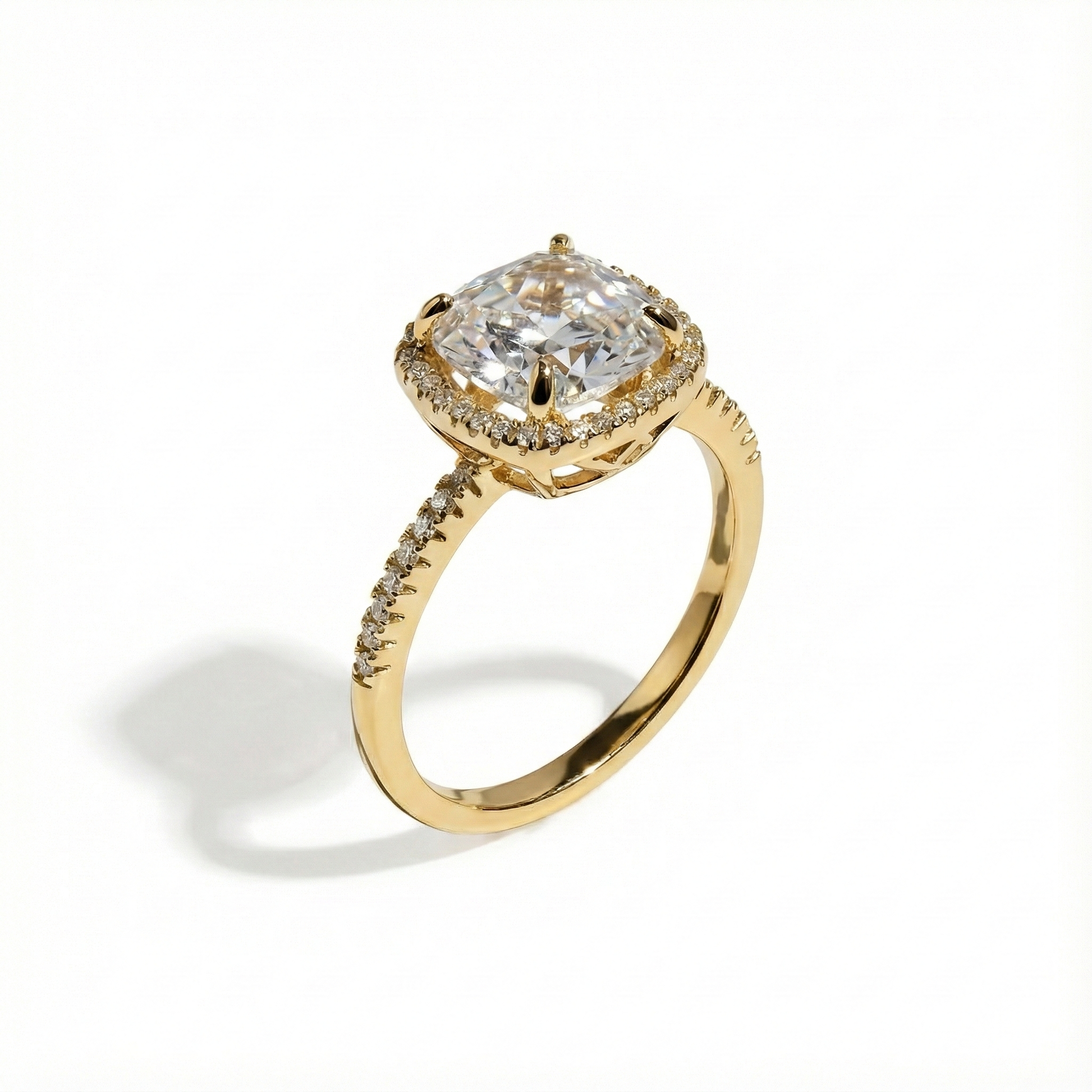 טבעת זהב עם אבן מושכת באמצע ושיבוץ עדין מסביב, לכל מי שרוצה לשדר עוצמה באלגנטיות ולגרום לכולם להסתכל.